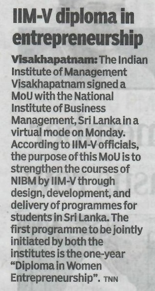 IIMV Vizag signs MoU with Lankan institute - 27.07.2021