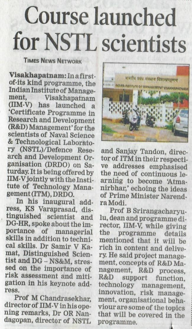 IIM-V Launches Certificate Course for NSTL Scientists - 16.08.2020