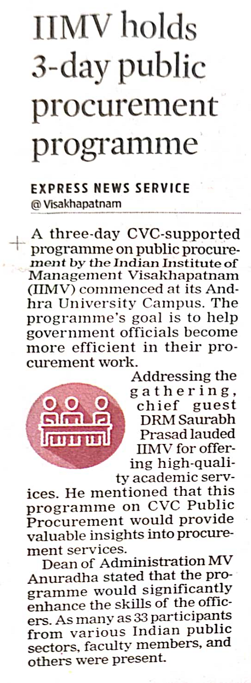 IIMV get top rating in Central Vigilance Commission CVC public procurement programme - 04.12.2023
