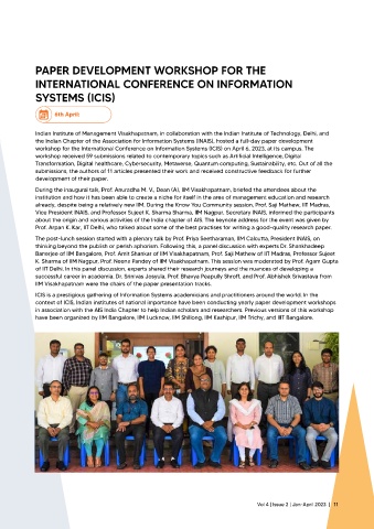 the Indian Chapter of the Association for Information Systems (INAIS), hosted a full-day paper development
