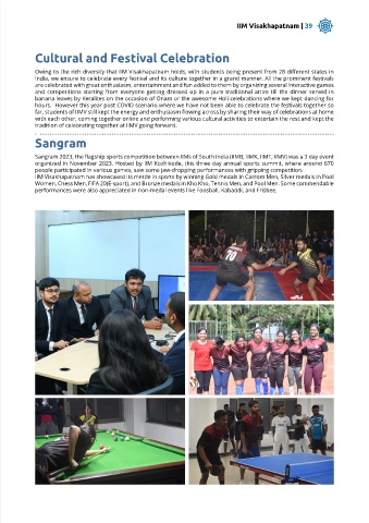 for the evolution of retail over the next five years. IIM Visakhapatnam has showcased its mettle in sports by winning Gold medals in Carrom Men, Silver medals in Pool
